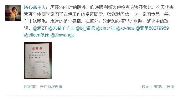 2011级全体学员致函慰问在伊拉克工作同学