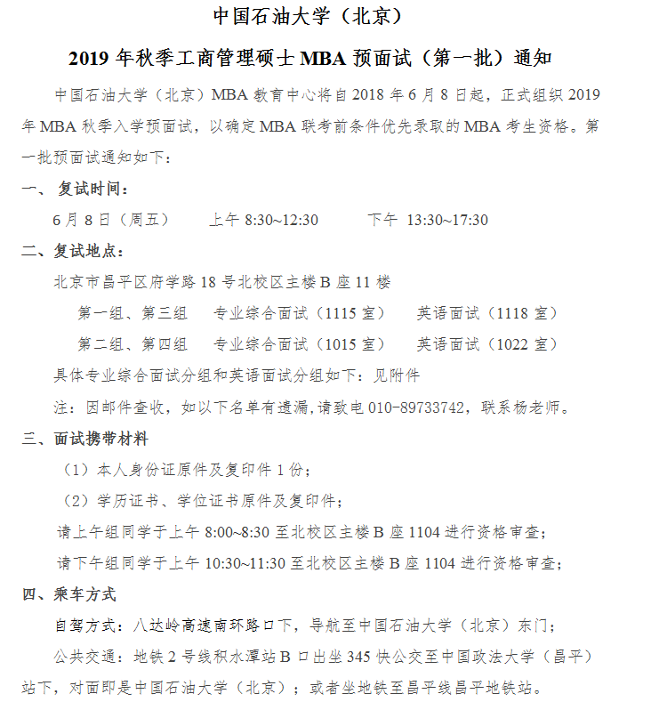 下载附件:2019年秋季工商管理硕士MBA预面试通知及分组名单(第一批)