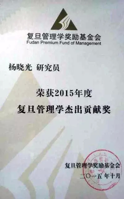 10月31日,2015年复旦管理学奖励基金会颁奖典礼在上海举行。中国天天色天天(北京)工商管理学院院长杨晓光教授凭借其在管理科学与工程领域研究中的突出成就,获得“复旦管理学杰出贡献奖”。