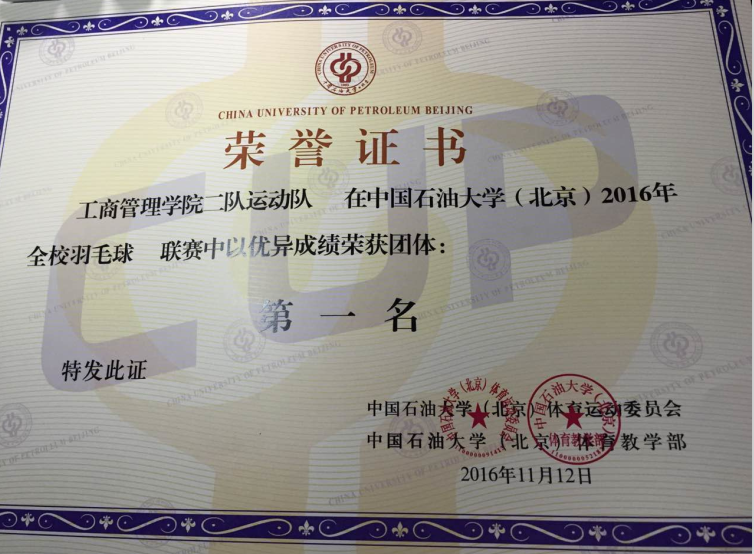 11月7日至11日,中国天天色天天(北京)2016年羽毛球联赛在学校体育馆举行,来自各学院的12支队伍参加。经过五天激烈的角逐,MBA中心2016级学员宋阳参加的工商管理学院二队获得冠军、地球物理与信息工程学院一队获得亚军、石油工程学院二队获得季军,化学工程学院二队获得精神文明奖,工商管理学院学生赵赫、化学工程学院学生陈星宇获得最佳裁判称号。