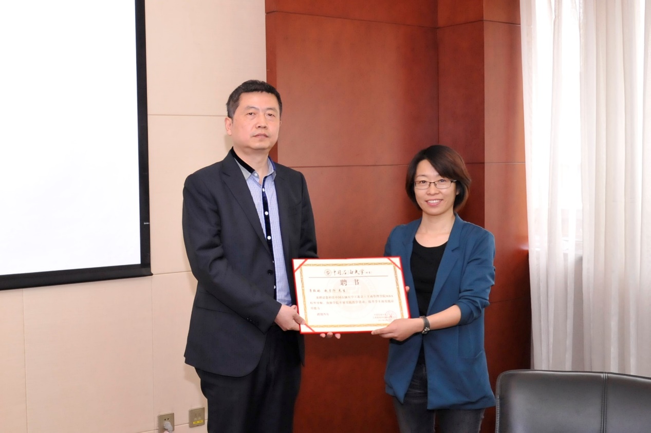 工商管理学院马春爱副院长为北京京仪自动化装备技术有限公司董事、总经理赵力行颁发MBA校外导师聘书