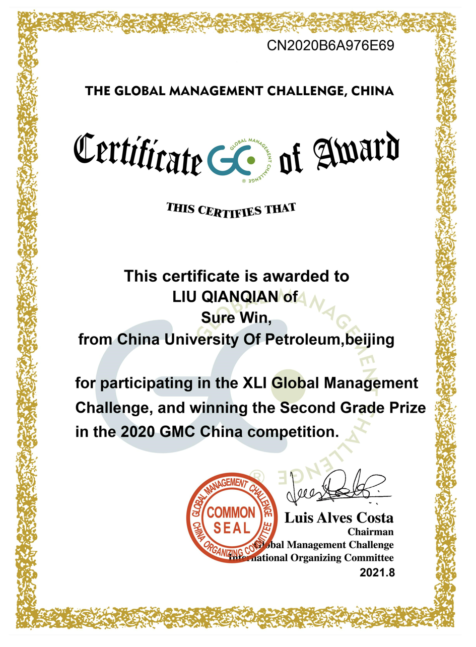 8月1日,第41届艾迪国际杯国际企业管理挑战赛(Global Management Challenge,简称GMC) 暨第25届(2020年度)中国赛区圆满落下帷幕。全国共计1200多支队伍报名初赛,464支队伍晋级复赛。经过近半年的激烈角逐,我校由刘倩倩、李曜轩、刘莉莉、魏春霞、张沛组成的“一定赢队”获得全国二等奖,由王天一、路童、赵丽、吕岑、李奇组成的“阿克曼队”获得全国三等奖。
