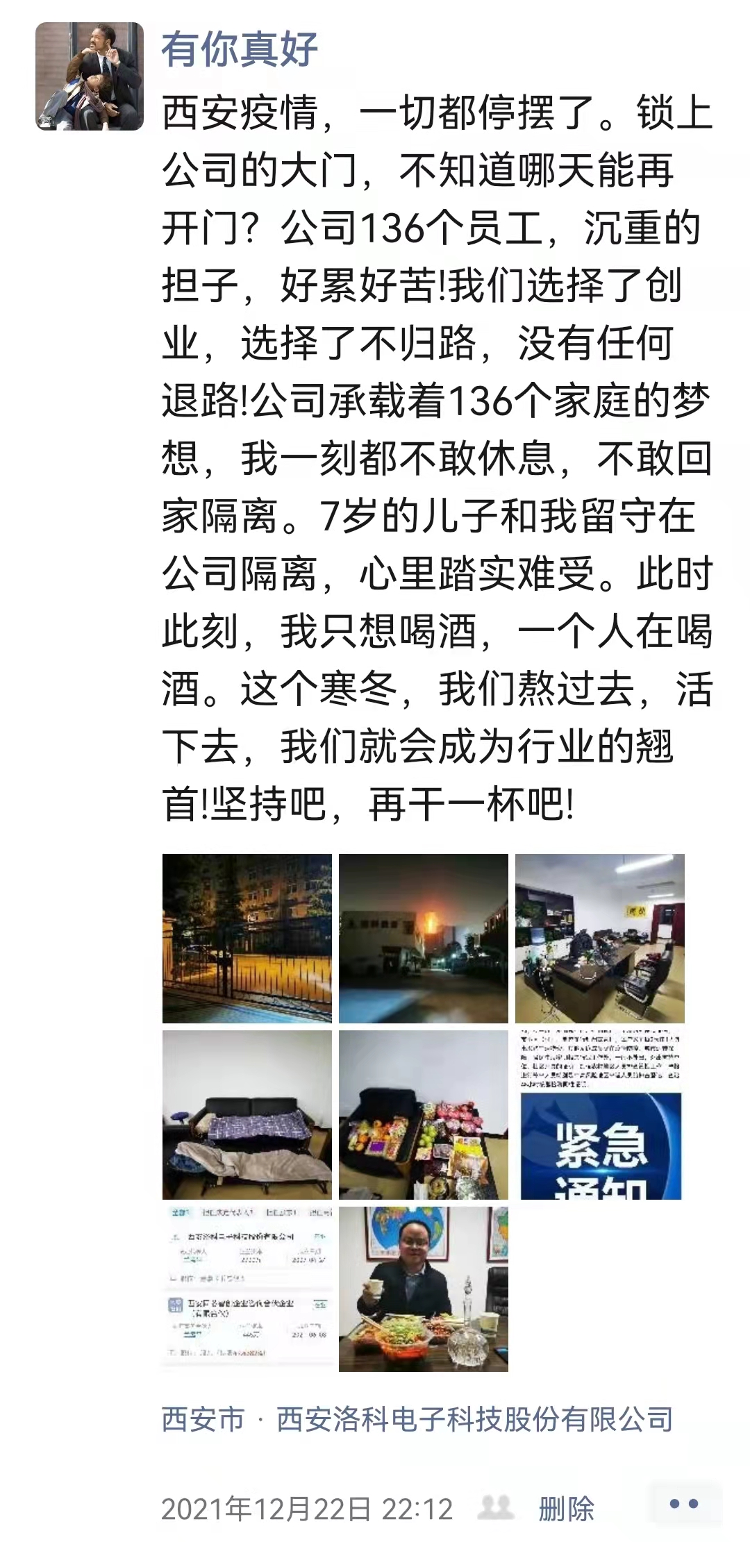 2020年3月我成立西安洛科股份公司,当时选择的赛道是油田智能增产设备行业,公司按照高标准起步,自主研发生产销售产品。目前在现场推广应用的有智能注水、智能采油设备,深受用户的认可。随着石油行业发展需要:碳达峰、碳中和目标要求,供给侧石油生产过程的清洁、低碳、可持续开采,这些又给我们洛科公司带来新的商机,公司计划将我们的成熟产品移植到天然气井、地热井上去使用。