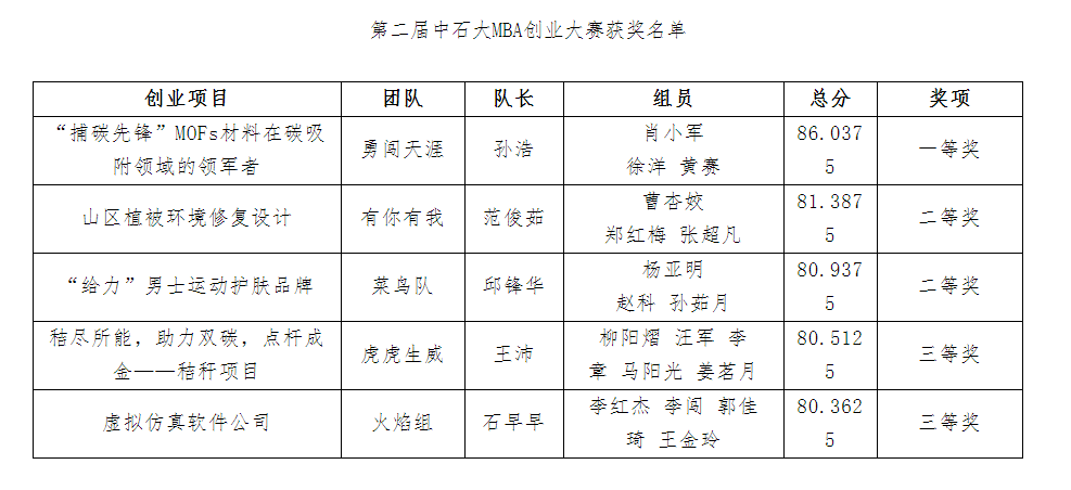 7月2日下午,中石大MBA第二届创业大赛以线上的形式,经过近四个小时的比拼,圆满落下帷幕。本次大赛邀请到原清华x-lab首席培育教练陶锋,中海智库创始人程华,米有校园CEO邹秀峰,脑泡科技合伙人兼CEO戴俊杰,英国创新创业教育者学会首位国际研究员张静五位校外专家作为嘉宾评委,经济管理学院教师邓秀焕、沈庆宁、金镭作为校内评委对18个参赛项目进行评审,300名MBA学员、校友在线观看。最终,《“捕碳先锋”MOFs材料在碳吸附领域的领军者》项目获得一等奖。